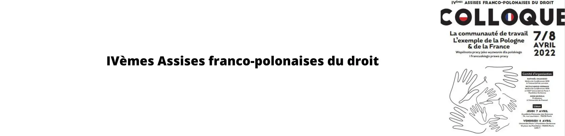 Les IVe Assises franco-polonaises de droit sont nées d'une coopération entre l'Université de A. Mickiewicz de Poznań, l'université Paris 1, Panthéon-Sorbonne (ISST) et l'université de Lorraine. Cette rencontre, qui durera deux jours, se tiendra au Centre scientifique à Paris de l'Académie polonaise des sciences à Paris et à l'université Panthéon-Sorbonne.