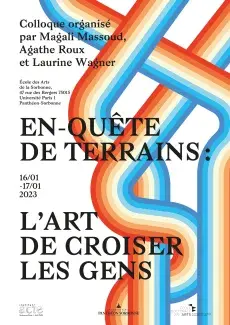Cette publication restitue les actes du colloque « En-quête de terrains : l’art de croiser les “gens”1 ». Ce colloque s’est déroulé le 16 et 17 janvier 2023 à l’École des Arts de la Sorbonne, Université Paris 1 Panthéon-Sorbonne.